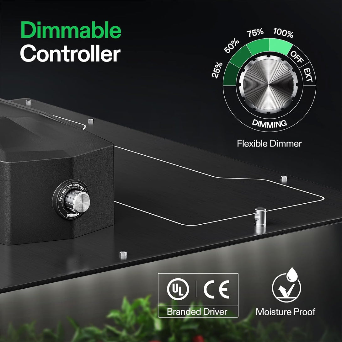 - Dimmable Ballast: This LED plant lamp has a dimming knob that makes it adaptable to different periods for various plants; The 4 levels of the adjustable dimmer can be used for sprouting to flowering; Designed with the daisy chain function (EXT), it allows you to connect multiple lights with 1 socket and reduce the number of outlets to avoid the mess; The slimmer style body allows for more types of plants