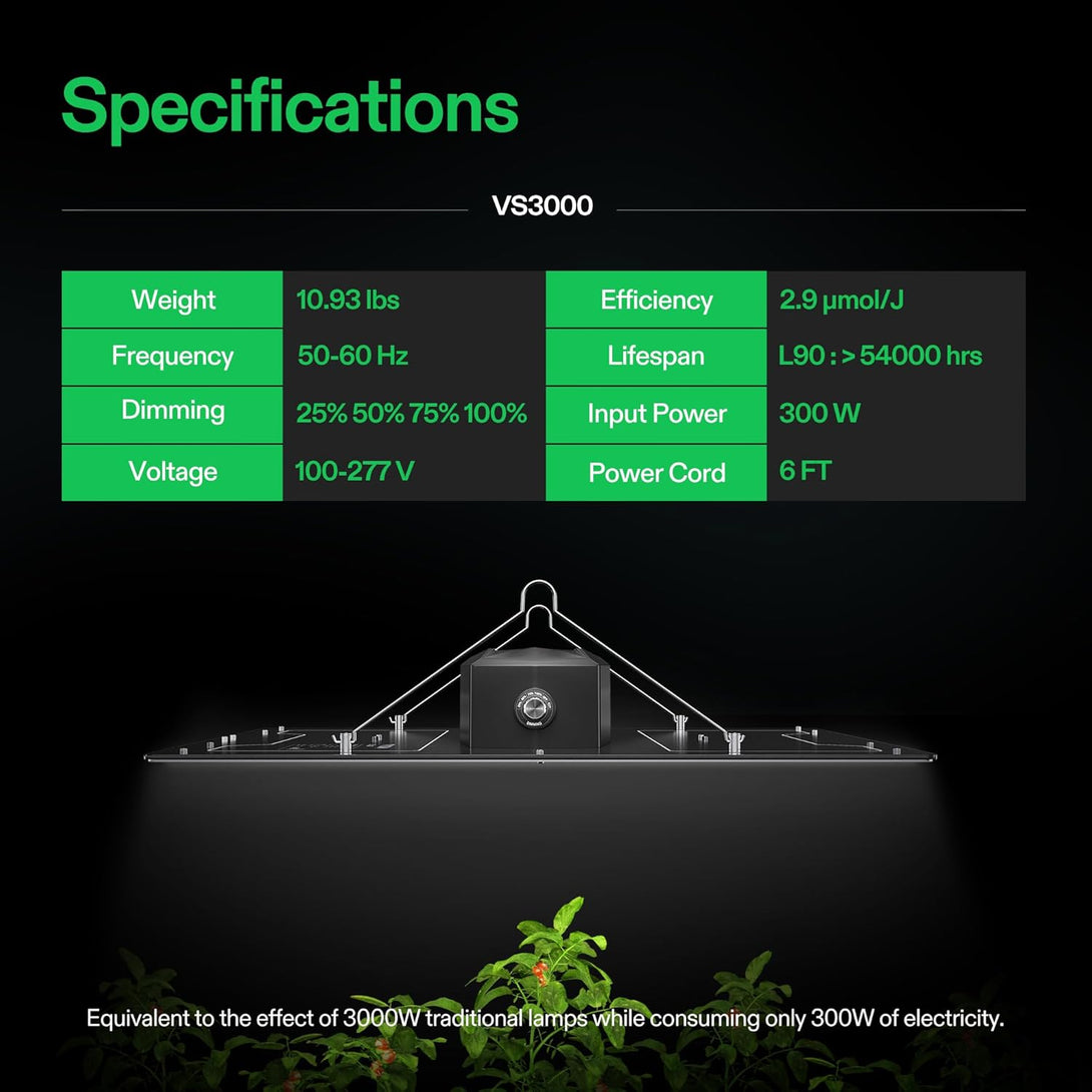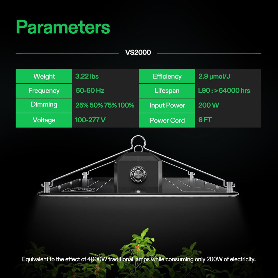 - High Efficiency & Lower Cost: The Vivosun VS1000 LED grow light uses the latest high-efficiency (2.75μmol/J) LED plant light technology with premium Samsung LM301 diodes, providing uniform lighting and stronger light output