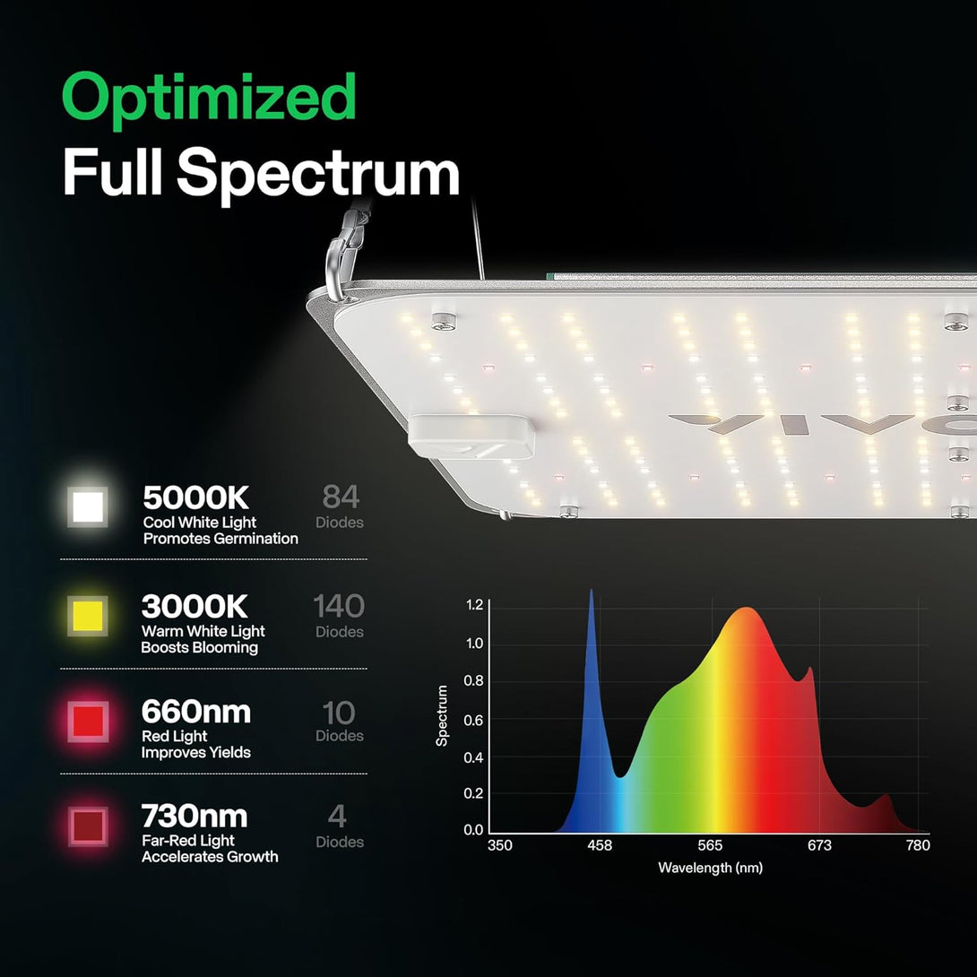 - Sunlike Spectrum Lighting: The grow light has an optimal full-spectrum coverage that includes 3000K, 5000K, 660nm, 750nm light (i.e., white, warm white, red, and far-red light); Give your plants what they need in every growth stage